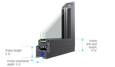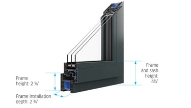 The PIXEL window system combines sleek aesthetics with robust performance. With a frame depth of 2 ¾”, a frame height of 2 ⅝”, and a frame and sash height of 4 ¼”, it’s engineered for stability, narrow sightlines, and modern architectural appeal. Slimmer dimensions, without compromising efficiency.
