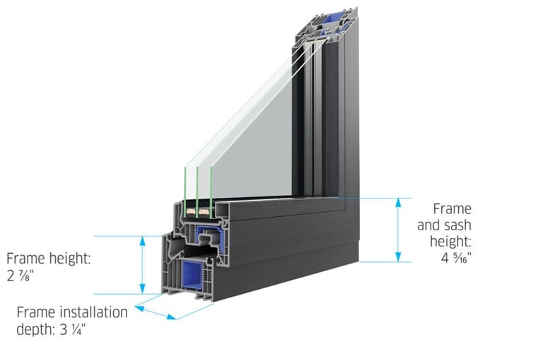 With a frame installation depth of 3 ¼”, a frame height of 2 ⅞”, and a total frame and sash height of 4 5⁄16″, the PAVA system delivers excellent thermal insulation and structural strength. Its advanced multi-chamber design makes it ideal for demanding environments and energy-conscious homes—offering both durability and elegance in one refined solution.